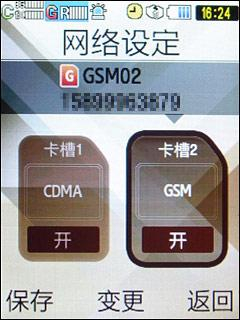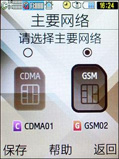插入两张SIM卡后,主屏上就会显示“C”和“G”两个信号条,并且被设置为主要网络的网络标志会用蓝底显示。为了清楚分辨两张卡,三星为W589加入了多项小功能,例如用户可以为网络命名,为不同的网络设置不同的图形标志。