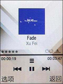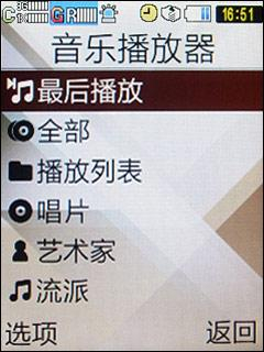 三星W589内置的音乐播放器界面比较简单,支持音乐库和列表管理,音频格式支持MP3, AAC和WMA。另外它还支持主流的专辑封面,播放界面上的控制键也设计得足够大以适应手指触摸操作。W589还可以外接蓝牙立体声耳机,彻底解除耳机线的束缚。