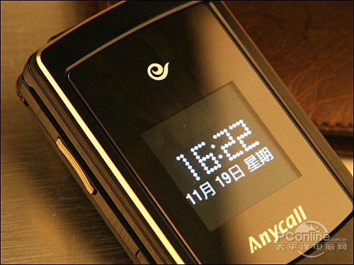 三星W589采用翻盖设计,机身线条硬朗。黑色的主色调加上金色的金属镀边更想表达手机商务的气息。三星W589手机正面有一个彩色外屏,由于采用镜面设计,因此很容易沾染指纹,需要经常清理。另外,扬声器被安排在外显示屏下方。手机尺寸是48.9x103.7x15.6mm,重量为110.8克,作为一款偏重商务的手机,把它握在手中大小适中,不过如果是女性用户可能会觉得有点大。