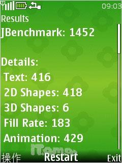 作为S40的入门级机型,安装一些实用的诸如QQ、UCWEB的JAVA程序是年轻玩家必需的功能,支持JAVA的安装也方便了用户自行安装日常应用和游戏,我们通过 Jbenchmark两款基本的测试软件对2700c和2730c进行了测试,二者得分十分相近,对JAVA均有不错的支持。