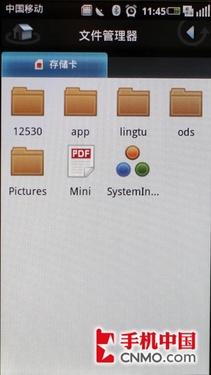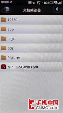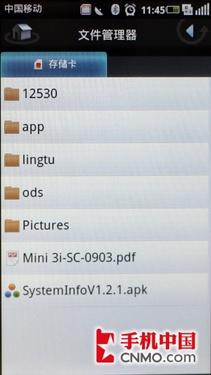 此外,戴尔Mini 3i还内置了文件管理器,用户可以对存储卡内的文件夹进行查看,需要注意的是音乐文件夹名称为12530。