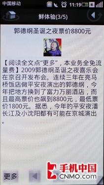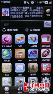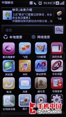 待机屏幕顶端的矩形区域为鲜体验与飞信功能区,包含了当日快讯以及飞信界面切换信息。