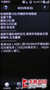 需要说明的是,由于内置网络音乐搜索下载功能需要付费使用,所以还是建议需要使用该功能的Mini 3i用户选择资费较为合理的包月套餐使用。