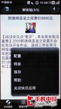 通过快讯,用户可以浏览到当天热线新闻,新闻内容涵盖了时政、体育、娱乐等分类,此外,还可通过戴尔Mini 3i的电容屏幕进行缩放操作。