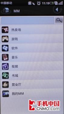 作为一款中国移动定制OMS产品,戴尔Mini 3i同样内置了MM客户端(MobileMarket),用户可以通过该软件实现实时下载与手机匹配的软件进行使用。
