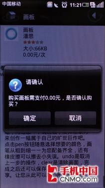 在测试过程中,MM会提示用户,每次下载程序所需费用,确认后则进入下载页面,不过软件页60款左右的程序数量仍显单薄,若想成为真正Market级别的软件市场,看来OMS要走的路还长的很。