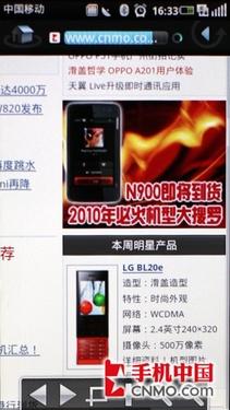 戴尔Mini 3i内置了网络浏览器,对Wap以及WWW页面支持十分完善,并且可以在横向操作情况下自动旋转,而电容屏幕的应用则带来了灵活的多点触控缩放功能。
