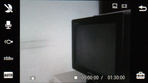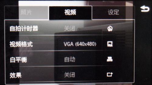 通过手机右侧的切换键我们可以选择到摄像模式,在摄像模式中,手机支持VGA分辨率视频的录制,并且还可以选择话筒关闭、夜间模式以及补光灯开启等设置,表现也是非常全面。
