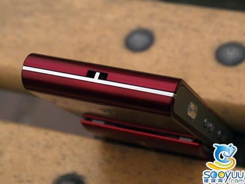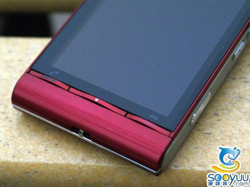 屏幕下方的三个按键也同样非常隐蔽,分别是接听键,菜单功能键以及挂机键,和手机下方的红色边框基本上融为一体,所以正面看上去手机有着不错的整体性。