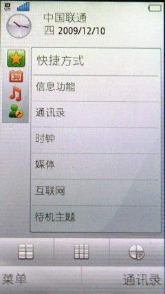 图为:索尼爱立信的Satio手机菜单