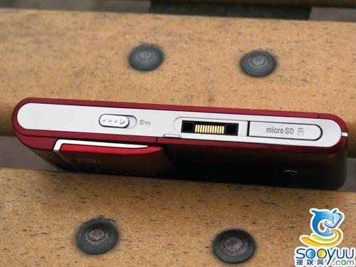 手机侧边的按键相对就比较多了,左边有一个和N97相仿的屏幕解锁键,向下是U_1的电源/数据线接口,以及micro SD(也就是TF)扩展卡槽,看来索尼爱立信是彻底放弃自家标准的M2存储卡而改用已成行业标准的micro SD卡了,令人欣慰。不过充电/数据接口还是延续了索尼爱立信从K750开始存在的自家FastPort接口,而不是目前各大厂商普遍采用的micro USB接口,希望索尼爱立信之后的产品可以在开放和通用性上再向前一步。