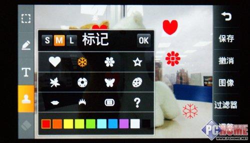 另外LG GD900e的内置图片浏览模式也很有特色,该机的图片查看模式下还支持图片编辑,包括调整锐度、色彩,加入文字、图章等等功能。