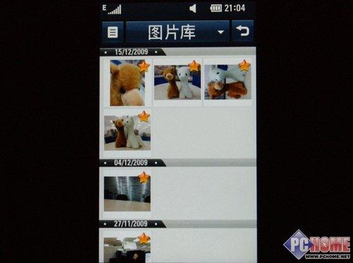 LG GD900e的图片库将手机存储内的图片和视频按日期来排列,管理很方便,另外在打开图片库后横置手机,就会进入到一个全新的3D浏览界面,相当酷炫!