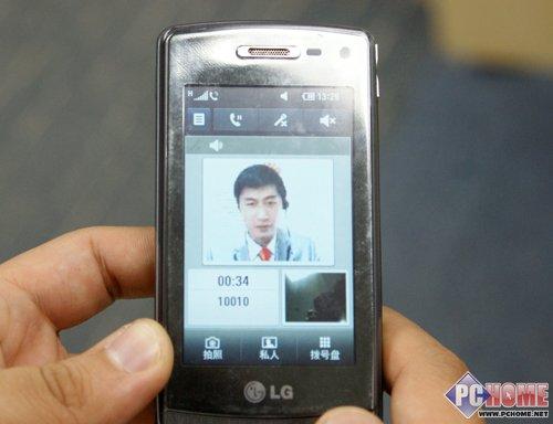 LG GD900e是一款支持联通WCDMA 3G网络的手机,点击联系人之后,会弹出通话模式,经测试,该机的前置摄像头还是在通话时的画面清晰度上还是很不错的。