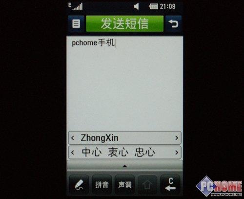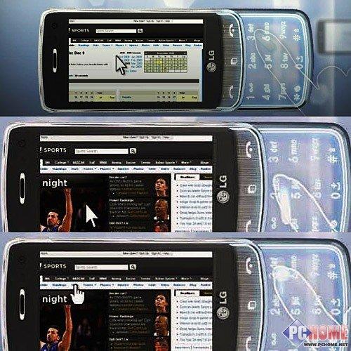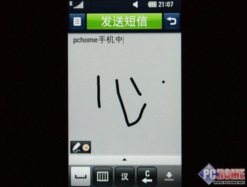 在文字输入时,我们可以在LG GD900e的透明键盘上如同在屏幕上一样直接用手指书写。