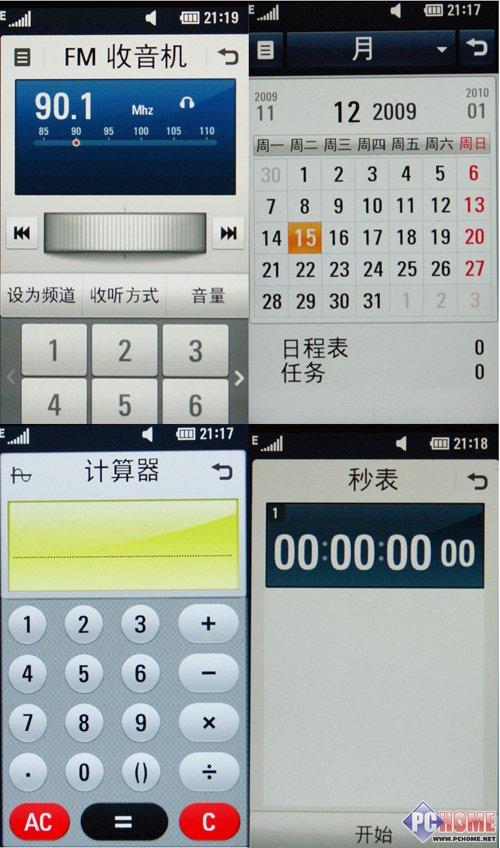 虽然没有内置GPS芯片,但是GD900e还是内置了Google Maps可以进行定位和路径规划等功能。而FM收音机、日历、秒表、世界时间、语音备忘录等日常会用到的程序也都一一具备。