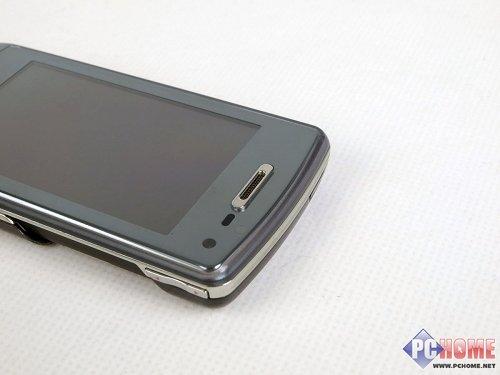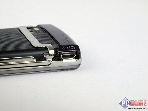 LG GD900e的电源开关位于机身顶端,该键同时可以锁屏幕。机身左侧上方有一个microUSB接口,可以用来进行数据传输或是充电,另外还有个microSD扩展槽、但是该microSD扩展槽是位于机身里侧,要推开滑盖才能看见。右侧则分布着音量增减以及拍照键。遗憾的是该机没有3.5mm耳机接口。