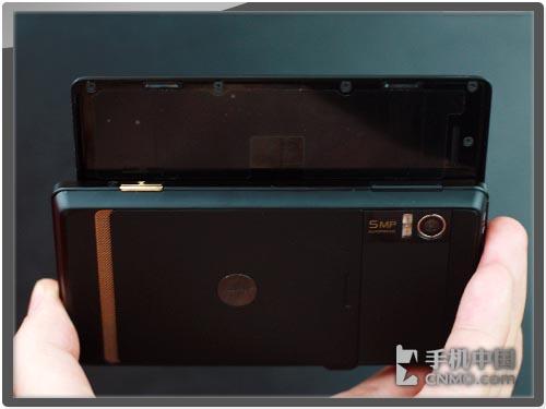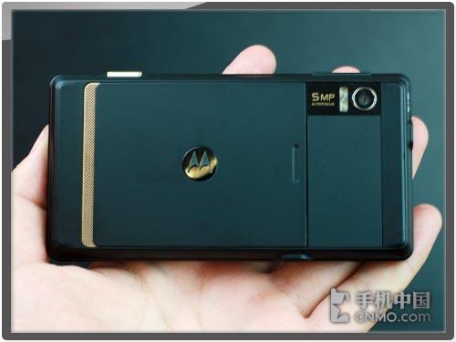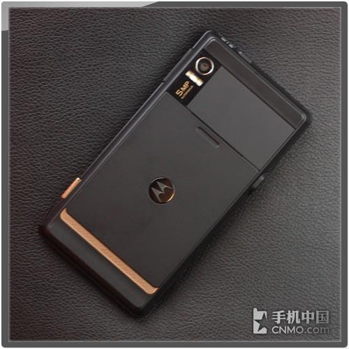 相信很多人被MOTO Milestone的设计折服,其中背面的设计也起到了很大的作用,如前所述,在这里你能感受到黑色与金色的完美融合。扬声器网罩、拍照键、MOTO LOGO以及拍照说明的字体的金色设计给整个背面增色不少。
