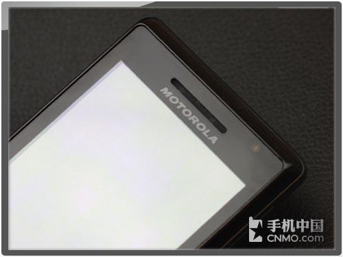 由于支持WCDMA网络,MOTO Milestone前置了摄像头,可以进行视频通话。这里还能够感受到MOTO Milestone正面金属边框的设计。