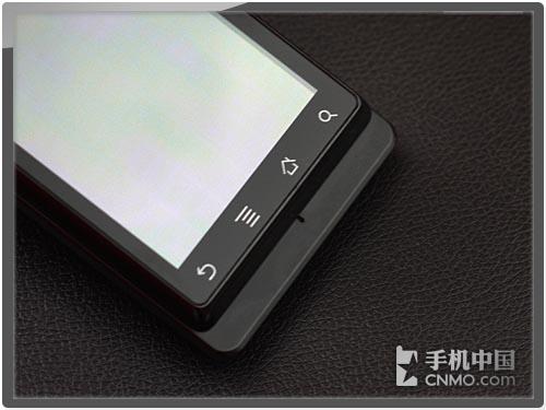 底部的四个虚拟按键同样是MOTO Milestone使用频率非常高的操作区,这几个按键的设计很好地和屏幕整合在一起,没有影响手机正面的“全触控”感觉。四个按键分别是“返回”、“选项”、“主页”、“搜索”,除了接听、挂断键,是和Hero、G2一样的,我认为这四个按键是Android智能机的精髓所在,因此是不建议厂商舍弃或简化这部分设计的。