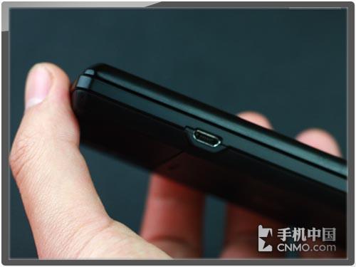 左侧上部的microUSB接口,没有配备保护盖,不过用起来倒是很方便。