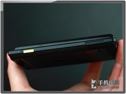 MOTO Milestone机身是很有棱角的设计,从microUSB接口、电源键、3.5毫米耳机口处都能看到一种梯形设计,这样的设计给整机很有机械风范,实际上,MOTO Milestone本身的金属味道也很浓。