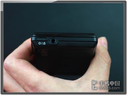 电源键和3.5毫米耳机接口处,这也就是我前面提到过的梯形设计,是不是很有工业设计的感觉。在这里突然感觉MOTO Milestone与索尼爱立信Xperia X1有某些相似之处,可能两者都是很薄的侧滑全键盘手机吧。