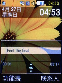 此外,三星C5510U还可进行最小化播放,位于待机界面中的半透明窗口包含了大致曲目信息,并且能够通过方向键进行内容切换。