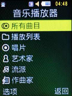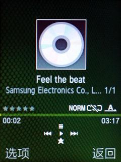 三星C5510U内置了音乐播放器,不过非标准音频接口设计则使得C5510U在通用性方面显得不够完善。而音乐播放器功能方面,三星C5510U则显得很是全面,包含专辑封面显示以及播放模式,音效设定一应俱全。