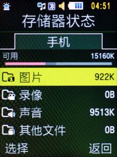 三星C5510U内置了约30MB存储空间,留给用户约15MB。当然,三星C5510U可以通过MicroSD卡进行容量扩展,不过位于电池下方的存储卡槽并不具备热插拔功能,较为麻烦。