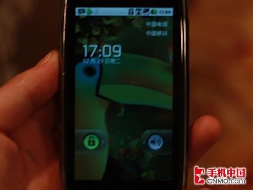 MOTO XT800采用的是Android 2.01的系统,因此我们看到的系统界面也是Android最新的,和之前我们评测Milestone的时候有一些不一样,比如解锁界面。Android 2.01相对于2.0有一些变化,取消了弧线滑动的设计。