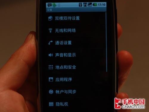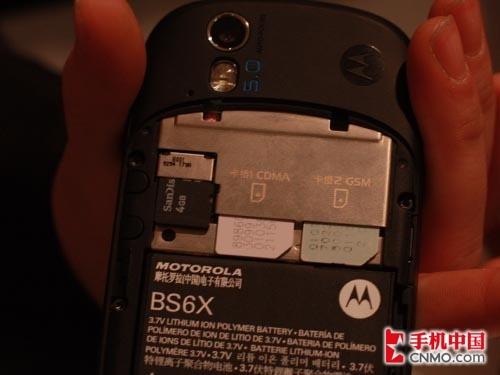 双模设计贯穿于MOTO XT800的机身硬件设计和功能设计,硬件方面我们已经看到了背面明显的双卡槽。在系统方面,从“系统设置”到短信功能、联系人列表都有专门针对双卡功能的优化。
