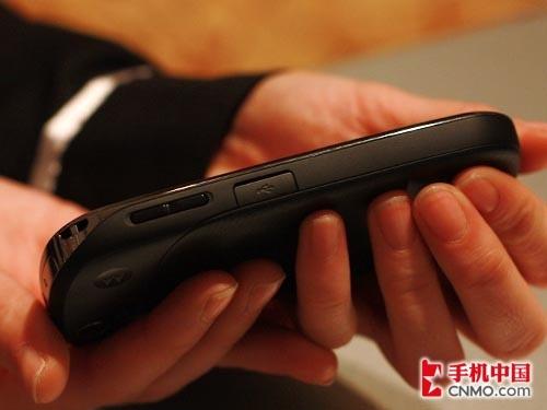 从边框往后,MOTO XT800大部分采用的是工程塑料材质,侧面分布有功能按键和接口,右上侧的HDMI高清视频输出接口是MOTO XT800的杀手锏功能之一,支持720P高清视频HDMI输出。