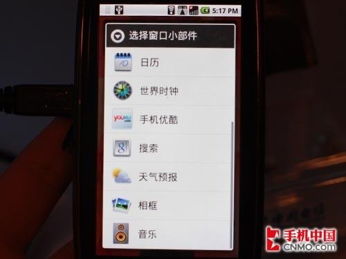 图为MOTO XT800内置Widget
