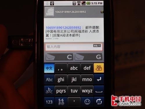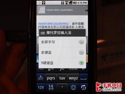 图为MOTO XT800短信输入界面