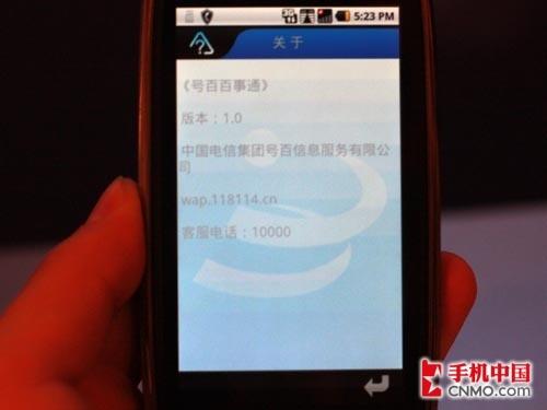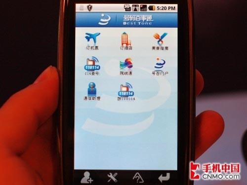 图为MOTO XT800内置的天翼相关服务