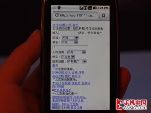 图为MOTO XT800网络浏览