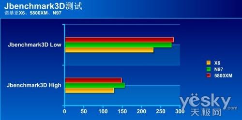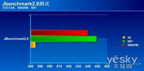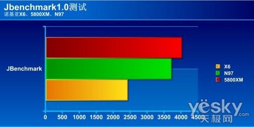 我们使用JBenchmark系列软件对诺基亚X6的性能进行测试,并把它与诺基亚5800XM和N97进行对比,从对比的结果来看,诺基亚X6的各项表现还不够强劲。