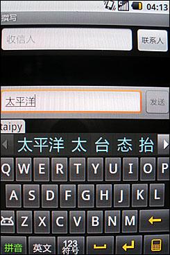 三星i899采用的是电阻屏,不支持时下非常流行的多点触控。令笔者诧异的是三星i899并没有配备一般电阻屏手机都会配备的手机笔,这意味着文字录入工作只能通过手指来完成。其中文录入方式有手写和仿传统键盘利用十个数字键输入或者利用全键盘输入。i899的全键盘输入方式存在设计上的缺陷,26个字母蜗在竖置的输入栏,每个字母的按压面积小的可怜,在实际的试输入中,虽然其输入正确率并不低,但笔者总是生怕会有误操作。