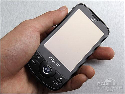 三星i899的三围体积是102×58×12.5mm,重量是125g,处于中等水平。58mm的宽度似乎将不少手小的MM拒之门外,但在笔者的手中恰能一手掌握,拥有不错的握持感。