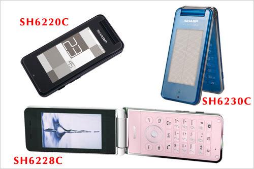 62系列的三款新机均为传统的翻盖机构架,并未加入旋屏设计,SH6220C提供粉红色与黑色可选,定位20至30岁的消费者;而SH6228C为粉红色或白色,定位20至40岁的女性;至于SH6230C有蓝色和白色两种版本,目标消费群体为20至40岁的人士。SH6220C与SH6228C是不错的情侣机搭配,抛开颜色之外两者的区别只剩下一个,那就是SH6228C特别加入了专为女士准备的UV检测功能。