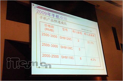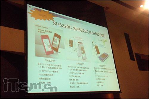 夏普商贸(中国)有限公司董事、经营企画室长酒井功先生向IT.com.cn记者透露,本次发布的三款新品将于本月上市,SH6220C与SH6228C的价位会在2500元以上,而SH6230C上市价在4000元左右。数据显示夏普2009年下半年推出的SH9120C和SH9130C在国内2500元至3000元市场中排名分别是第二和第五,两款产品加起来的市场占有率达到21.1%,可以说还是非常受中国消费者欢迎的,事实上在高价机型的竞争中,夏普目前的成绩仅次于诺基亚和三星。