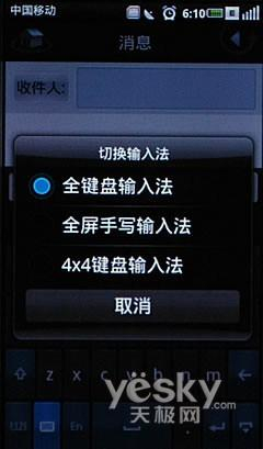在短信方面,mini 3i支持短信、彩信收发,而使用者比较关心的短信输入问题,mini 3i提供了虚拟QWERTY键盘、虚拟T9键盘以及手写操作,三种输入方式中,虚拟QWERTY键盘的按键较小,容易产生误操作,建议选择虚拟T9键盘或者手写输入,输入时手机会伴随有震动力回馈,而手机预置的搜狗输入法让输入效率得到了保障。
