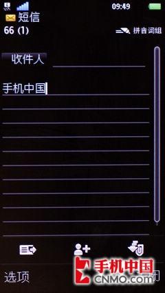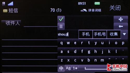 信息功能界面之中,我们很高兴看到索尼爱立信U5i在具备重力感应装置之后充分将功能利用在文字录入功能方面: