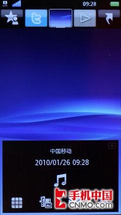 待机界面中,则在延续了索尼爱立信U_1多幅滑动界面同时,贴近了与X10等机型的距离。可以设置的多个界面功能拥有较强的用户操控性。通过点击挂机按键,可以在全屏幕显示、缩略待机边栏以及全部待机边栏(增加快捷音乐播放器)界面间切换。