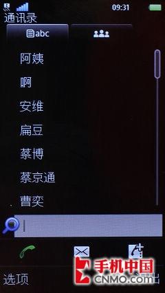 在联系人名录方面,索尼爱立信U5i也延续了S60第五版产品的特性,可以通过首字母进行查询。