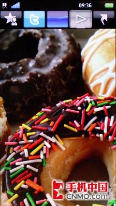 在图像浏览界面下,索尼爱立信U5i则延续了U_1的特色,将拍摄的照片作为纵向滑动使用。并且可以点选图片进入设为背景、发送以及查看媒体操作。