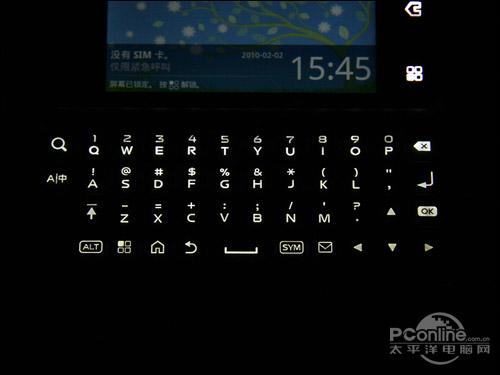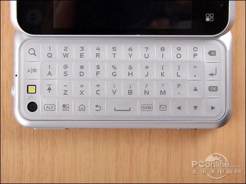 摩托罗拉ME600的全键盘空间充足,使用4行的设计,不过数字按键没有独立出来。除了字母按键,还有方向键以及功能按键,例如Home、返回、Menu、搜索都可以在键盘呼出,在系统操作中比较方便。
