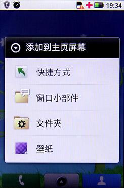 进入主界面,左右滑动最多支持5页,我们可以添加快捷方式、小组件,和其它Andorid手机的主要区别是,ME600支持摩托罗拉的MOTOblur,注册一个账号,并输入一些通讯软件的账号密码,ME600的桌面可以显示这些通讯软件的插件,方便我们和朋友交流,不过通讯软件限制于Facebook、Twitter、MySpace、Gmail等国外的主流通讯平台,对我们大陆用户来说实用性就一般了。