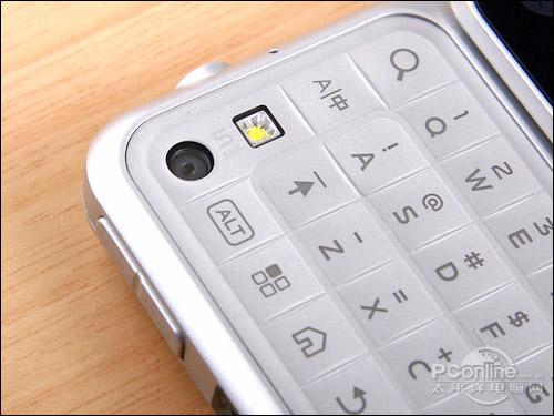 在闭合的状态下,摩托罗拉ME600的另一面是键盘,所以摄像头的位置也被安置在了键盘的左下角,看起来十分新奇,同时把屏幕翻上来,还能自拍哦,对mm来说这是个完美的设计啊!